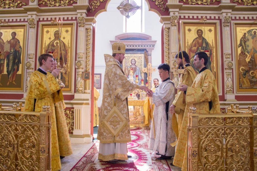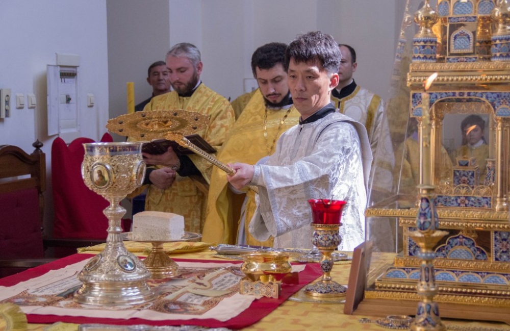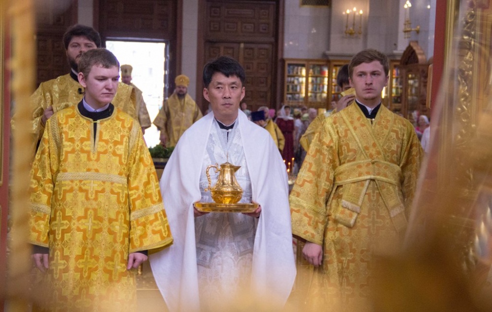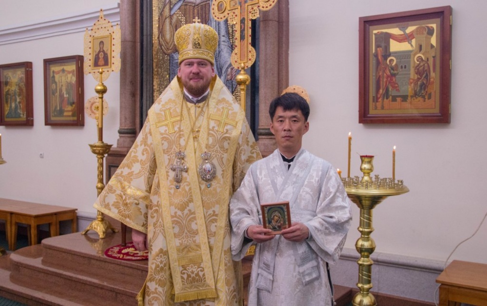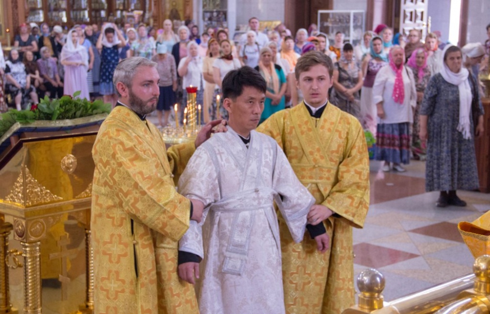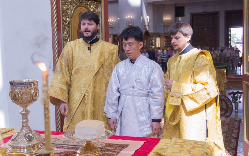 Митрополит Владимир совершил за Божественной литургией диаконскую хиротонию студента Хабаровской семинарии из Северной Кореи 29 июля 2018 года.