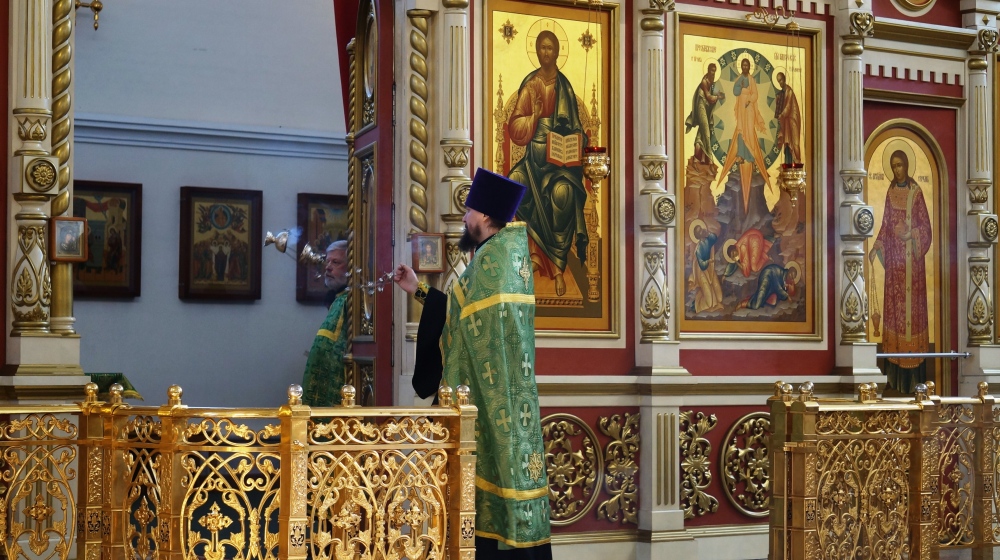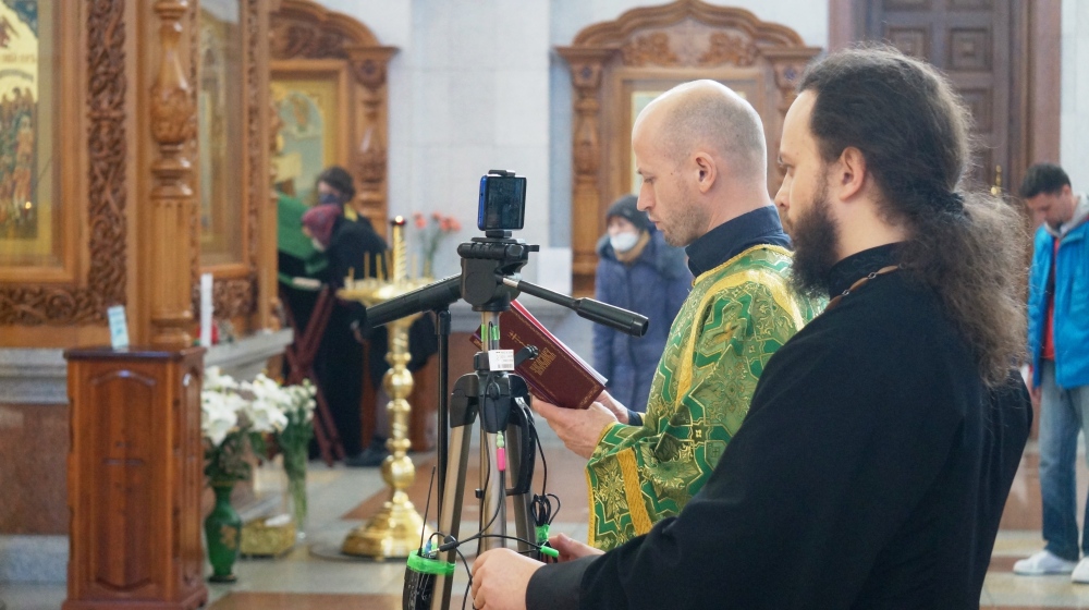 Хабаровск православный Фотогалерея События Митрополии Всенощное бдение в Спасо-Преображенском кафедральном соборе 11 апреля 2020 г.