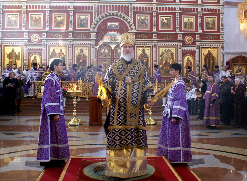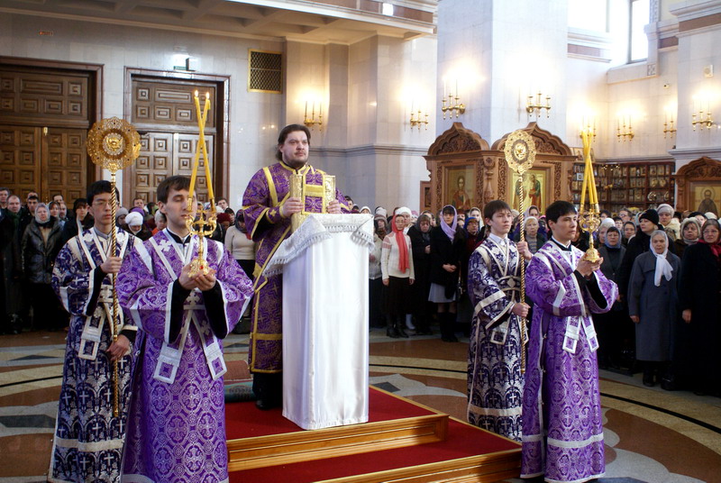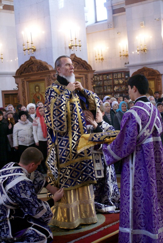 Хабаровск, 27 марта 2011 г. Божественная литургия в Спасо-Преображенском соборе в Крестопоклонную неделю